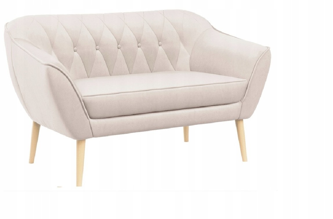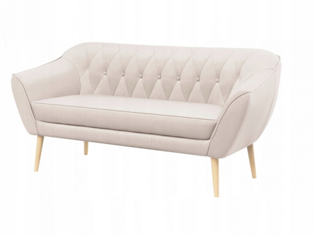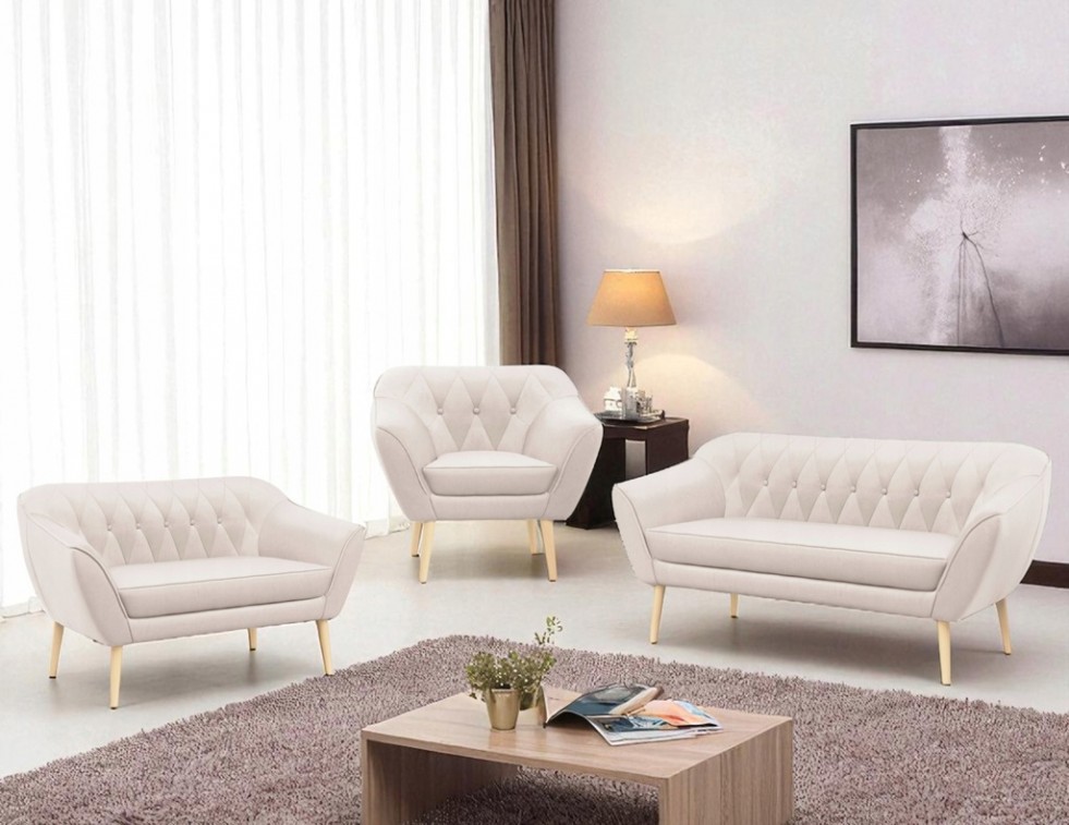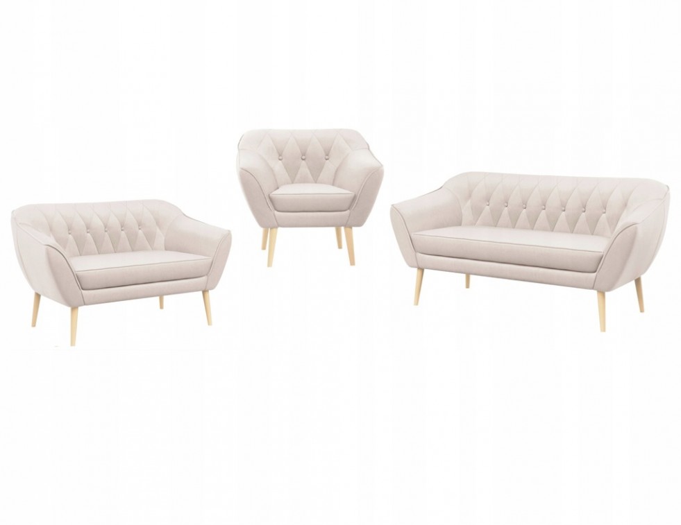 SOLIDNA SOFA 3 + 2 +1 W KOLORZE BEŻOWYM Z DREWNIANYMI NATURALNYMI NÓŻKAMI WZÓR PIKOWANIA OPARCIA ROMBY