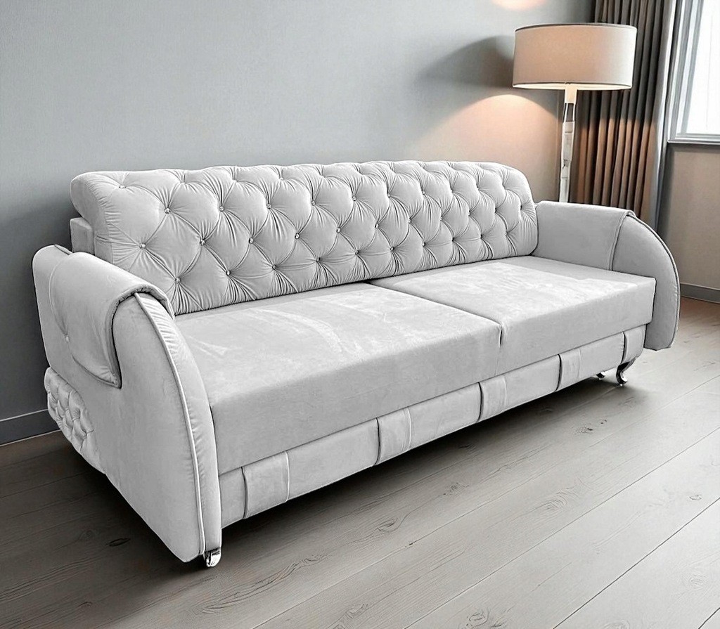 Sofa Kanapa pikowana LUIZA glamour chesterfield rozkładana z funkcją spania i pojemnikiem na pościel