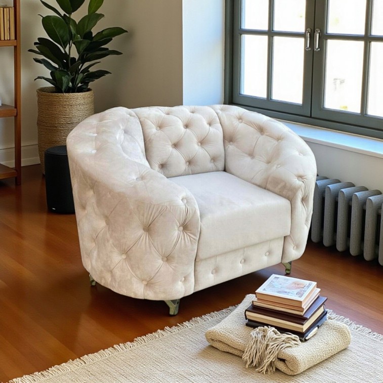 Fotel Molly to wyjątkowy mebel wypoczynkowy. Zaprojektowany przez zespół młodych, zdolnych designerów łączy ponadczasową, sprawdzoną od lat 50. ubiegłego wieku formę fotela chesterfield, z nowoczesnymi standardami produkcyjnymi i materiałami najwyższej jakości.