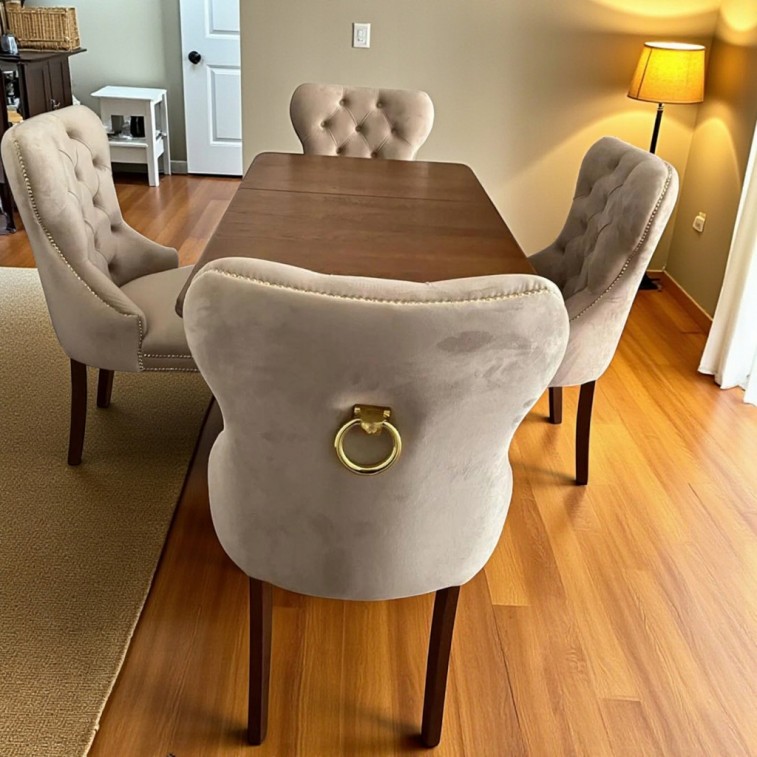 KOMPLET DO SALONU ZESTAW STÓŁ 80x140/180 + 4 KRZESŁA PIKOWANE GLAMOUR