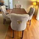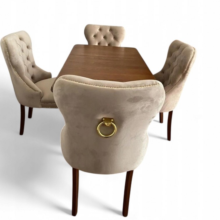 PIĘKNY ZESTAW GLAMOUR STÓŁ ROZKŁADANY MST-13 80x140/180 + WKŁAD 1x40cm długość po rozłożeniu 180cm + 4 krzesła tapicerowane Madame ze złotą kołatką i pinezkami w stylu GLAMOUR