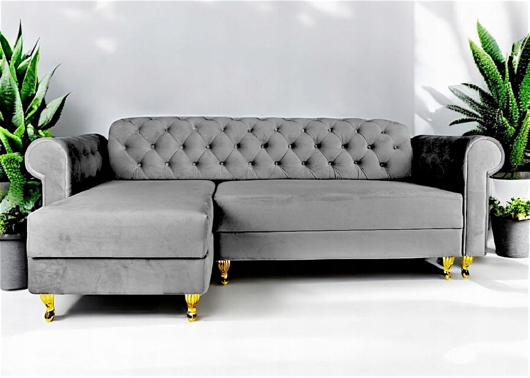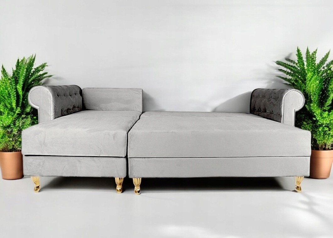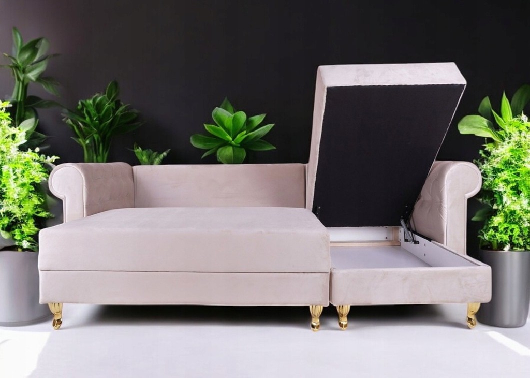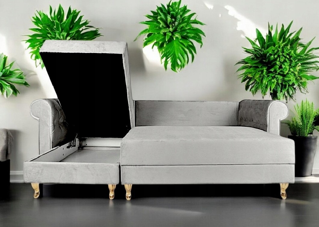 NAROŻNIK BELLA GLAMOUR PIKOWANY FUNKCJA SPANIA POJEMNIK NA POŚCIEL