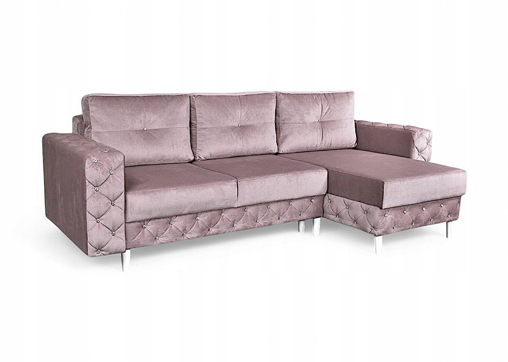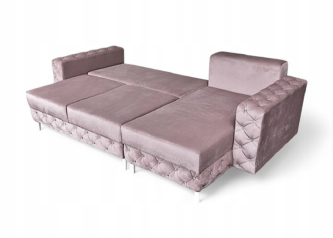 NAROŻNIK GLAMOUR PIKOWANY FUNKCJA SPANIA POJEMNIK NA POŚCIEL