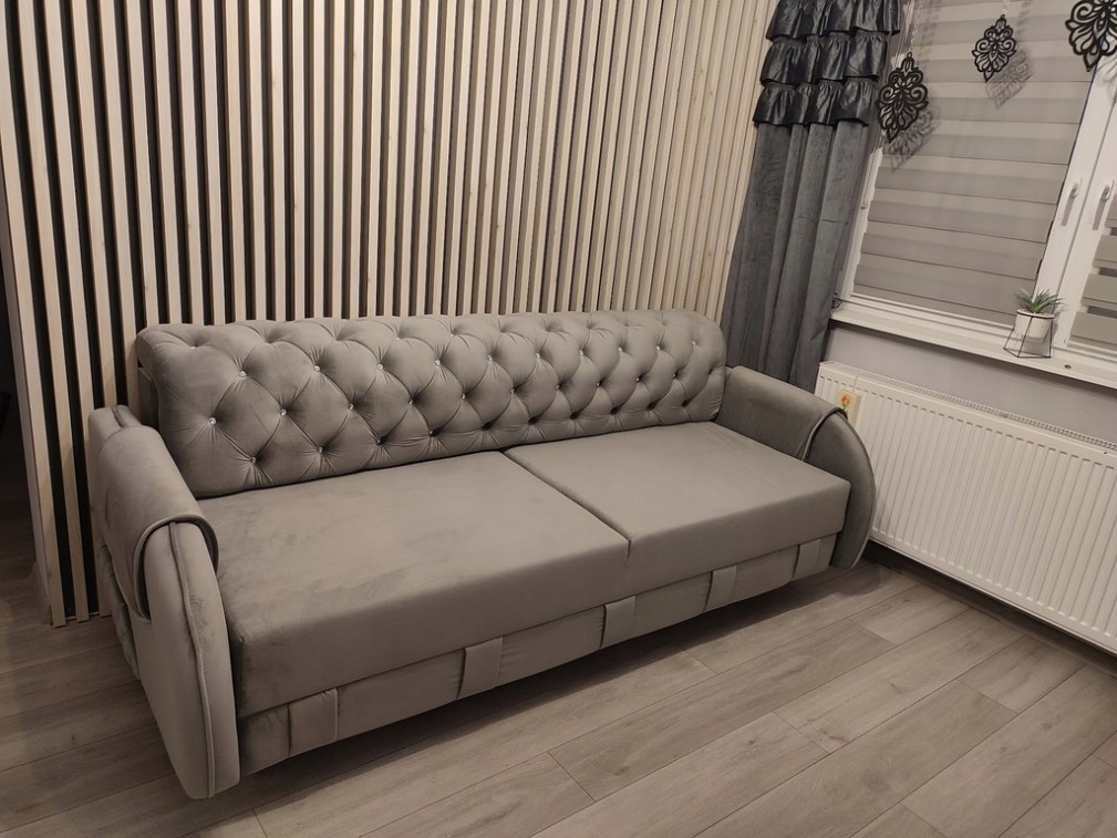 Kanapa LUIZA pikowana w stylu chesterfield z funkcją spania i pojemnikiem