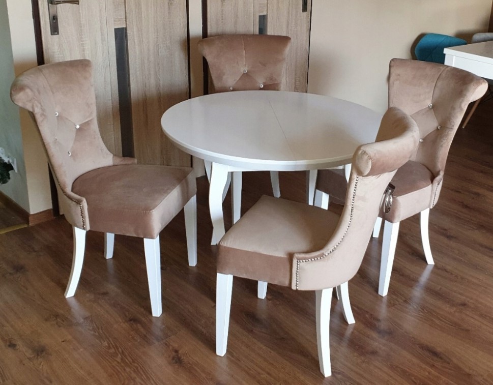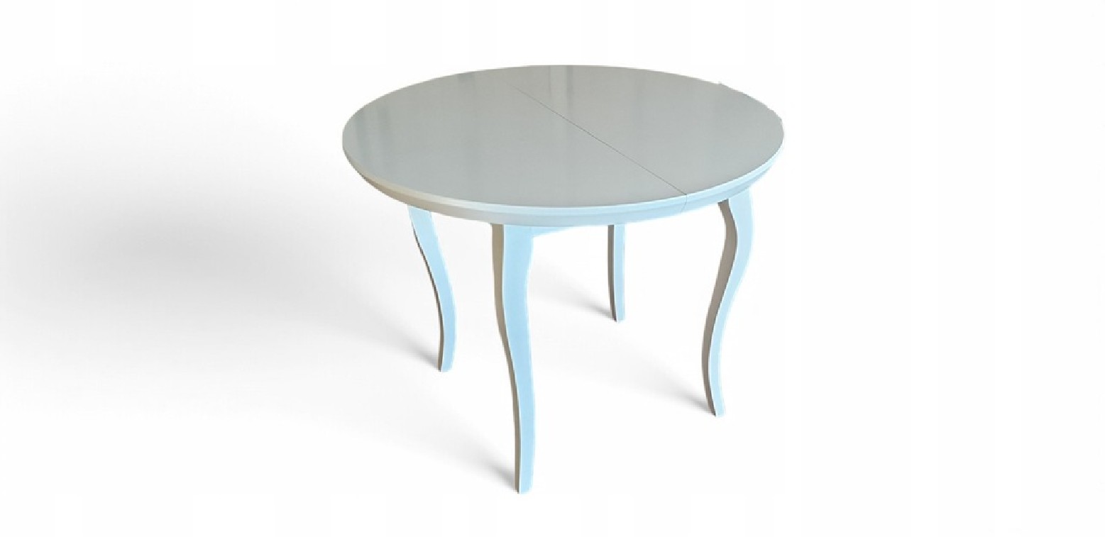 BIAŁY SOLIDNY STÓŁ OKRĄGŁY MST-3 Ludwik rozkładany Fi 90cm+1x40cm wkładka = 130 cm po rozłożeniu.