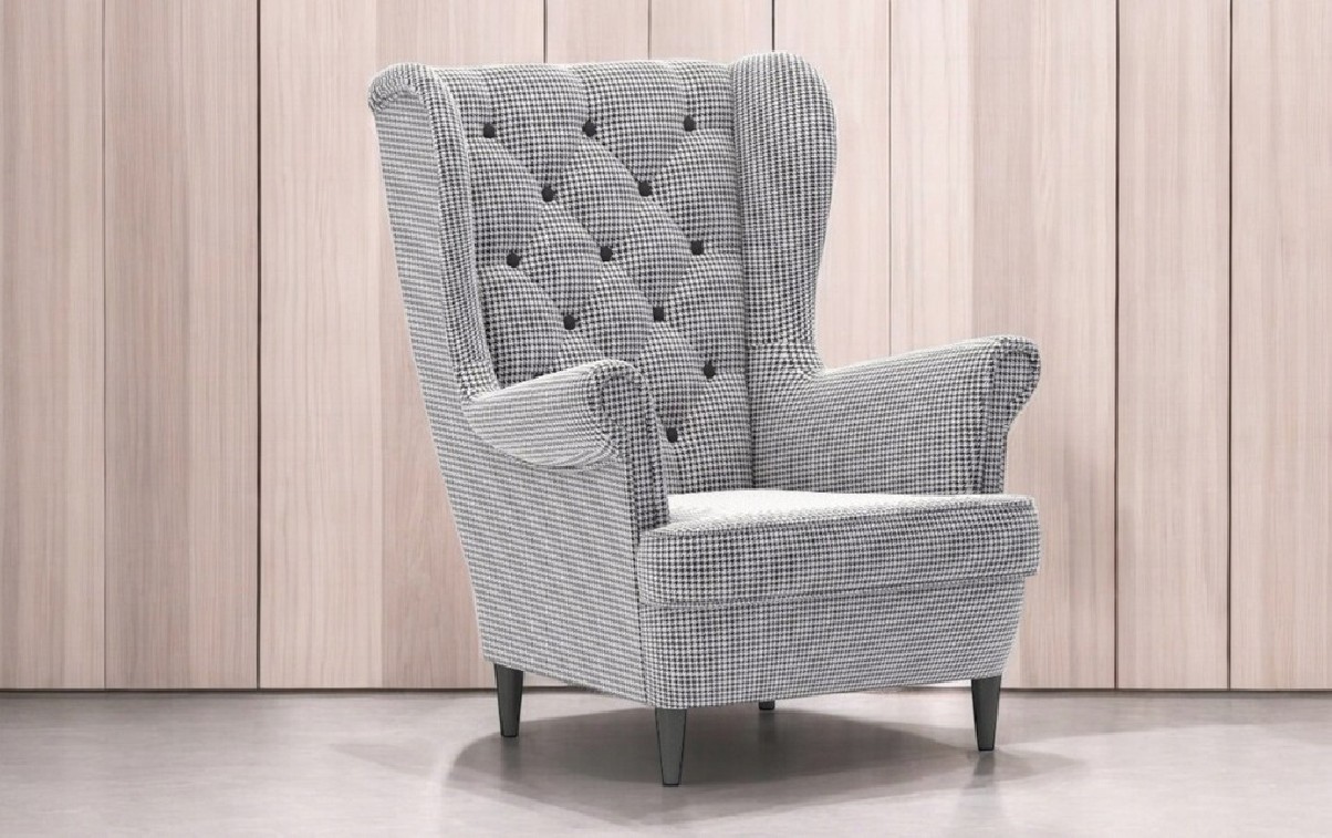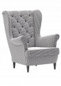 SOLIDNY FOTEL USZAK PIKOWANY W MATERIALE PEPITKĘ