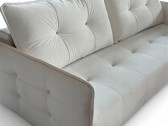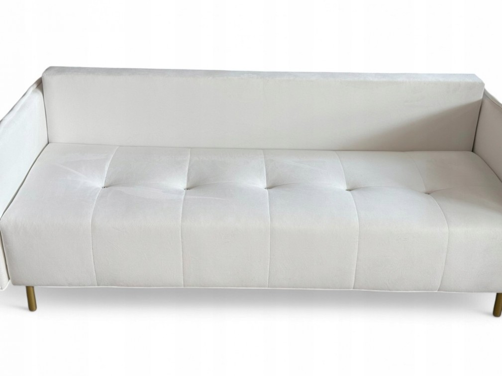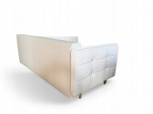 KOMPAKTOWA KANAPA AURORA SLIM W KREMOWYM ODCIENIU Z DREWNIANYMI NÓŻKAMI. WZÓR PIKOWANIA. PIKI + OZDOBNE PRZESZYCIA