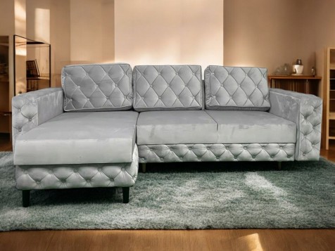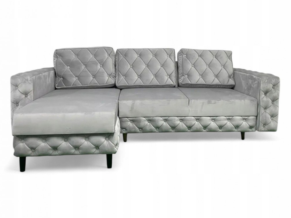 NAROŻNIK GLAMOUR PIKOWANY FUNKCJA SPANIA POJEMNIK NA POŚCIEL