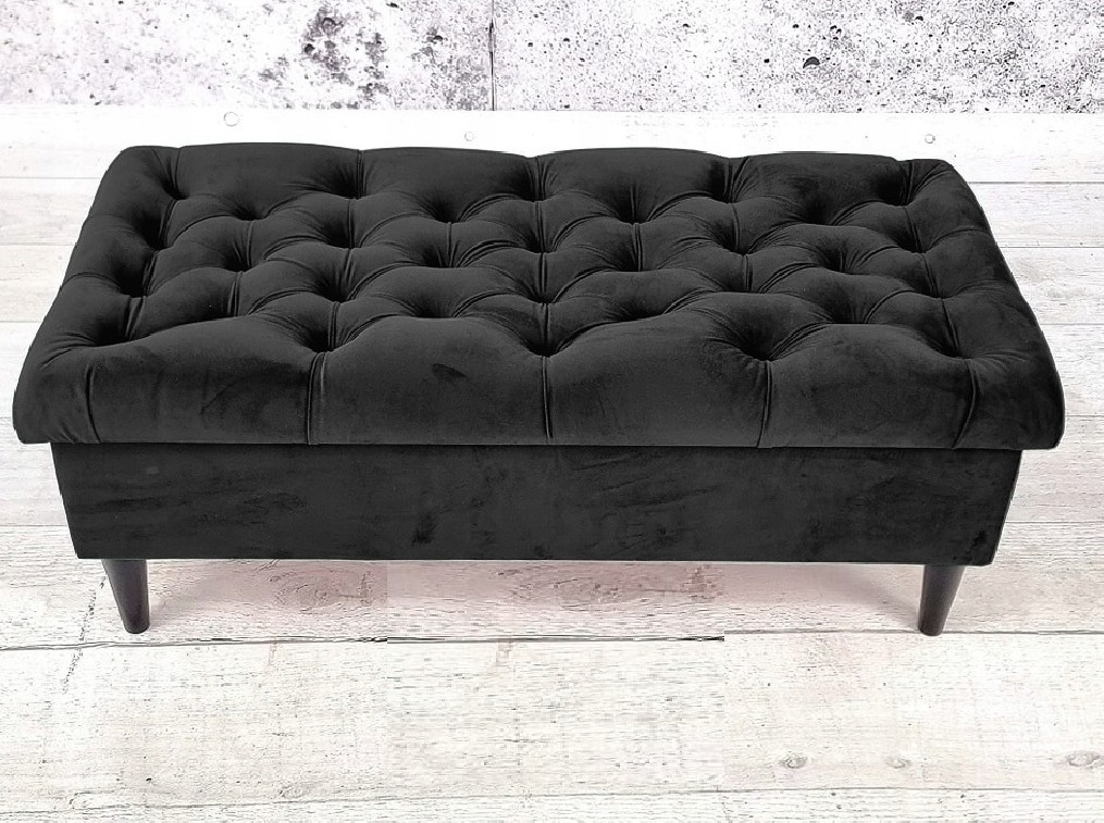 Duża solidna pufa glamour, podnóżek otwierany ze schowkiem w stylu chesterfield głęboko pikowany