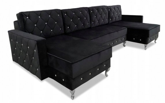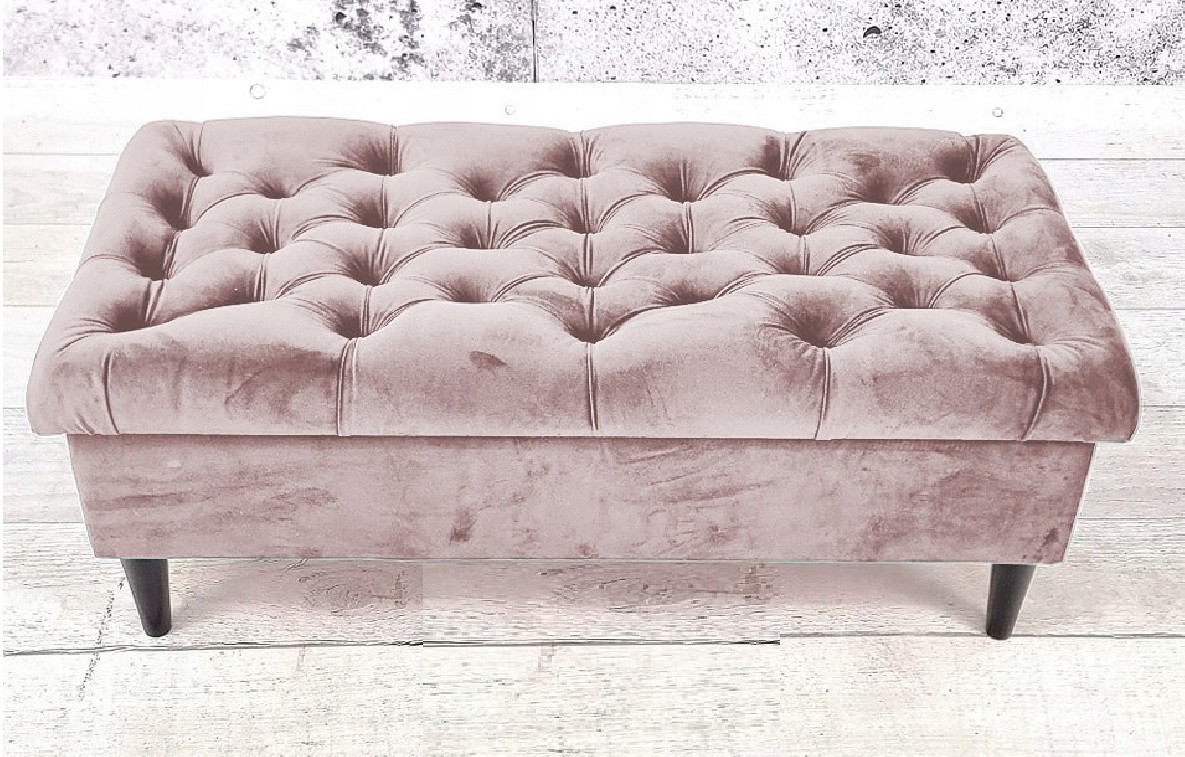 Duża solidna pufa glamour, podnóżek otwierany ze schowkiem w stylu chesterfield głęboko pikowany