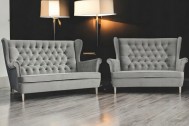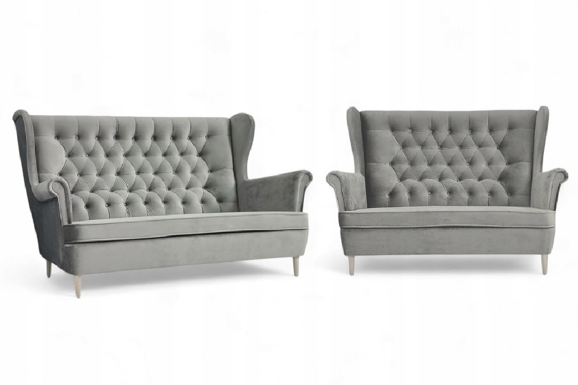 KOMPLET WYPOCZYNKOWY W STYLU CHESTERFIELD SOFA USZAK III OSOBOWA PIKOWANA + SOFA USZAK II OSOBOWA