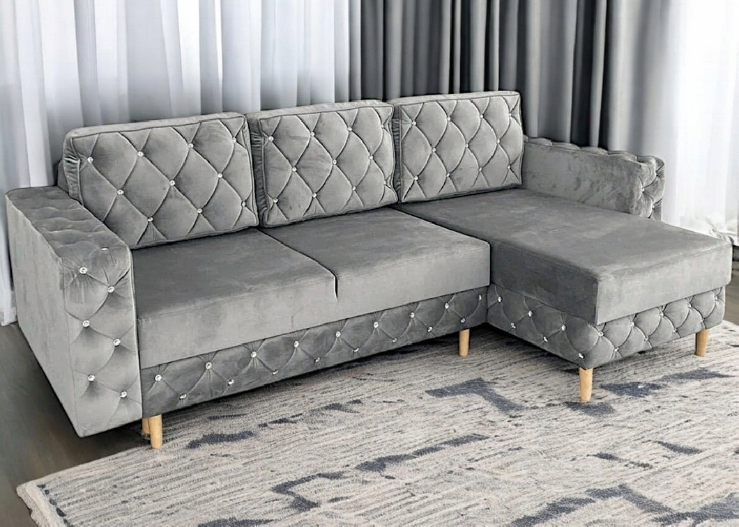 NAROŻNIK GLAMOUR PIKOWANY FUNKCJA SPANIA POJEMNIK NA POŚCIEL
