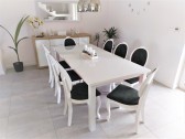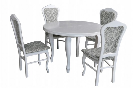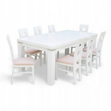 Piękny BIAŁY ZESTAW do salonu stół rozkładany MST-8 100x200+2x50 wkładka długość po rozłożeniu 250/300cm i 8 krzeseł JULIA z litego drewna bukowego w kolorze białym.