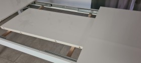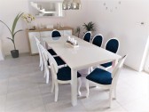 Piękny BIAŁY ZESTAW do salonu stół rozkładany MST-8 100x200+2x50 wkładka długość po rozłożeniu 250/300cm i 8 krzeseł JULIA z litego drewna bukowego w kolorze białym.