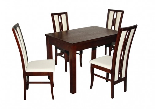 Na siedzisku znajduje się tapicerka oraz pianka poliuretanowa Klient może wybrać dowolną tapicerkę oraz wybarwienie drewna. Blat stołu wykonany jest z płyty MDF pokrytej lakierem.
