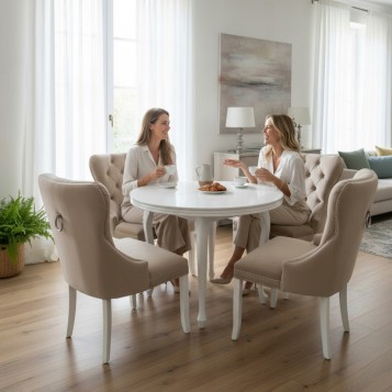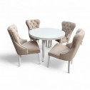 Elegancki Biały Zestaw do Salonu w Stylu Glamour – Stół o średnicy 110 cm MS-3 LUDWIK i 4 Krzesła MADAME