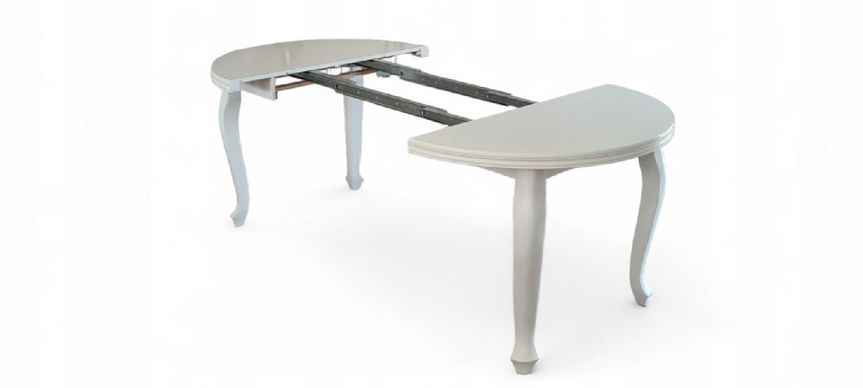- Funkcja rozkładania: Dzięki stalowym prowadnicom, stół można łatwo powiększyć o dodatkową wkładkę.