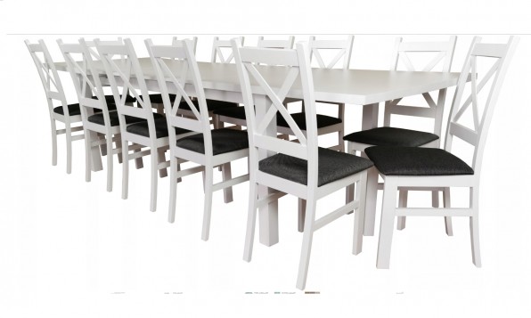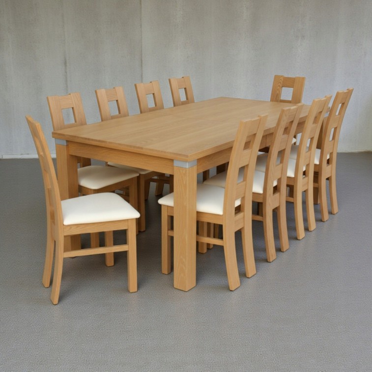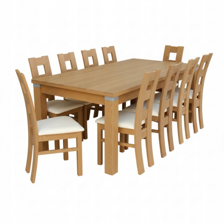 ZESTAW STÓŁ DĘBOWY FORNIR NATURALNY 100x250/ 350cm + 10 KRZESEŁ Z DREWNA