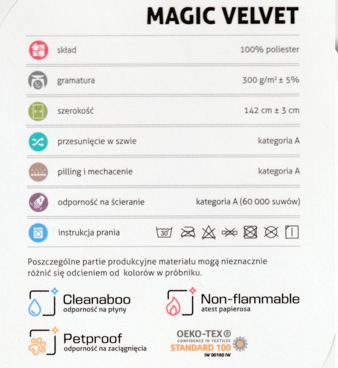 MAGIC Velvet TKANINA PLAMOODPORNA /cleanaboo/ petproof