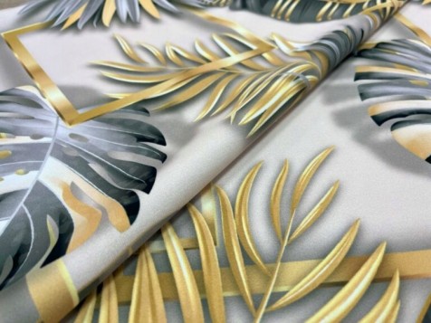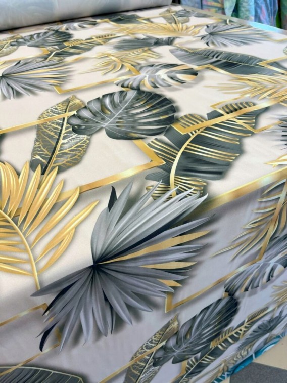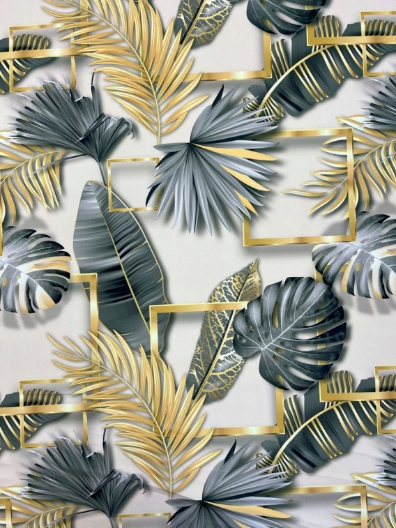 MATERIAŁ PLUSZ WELUR WZOR ZŁOTE LISCIE KWIATY MONSTERA