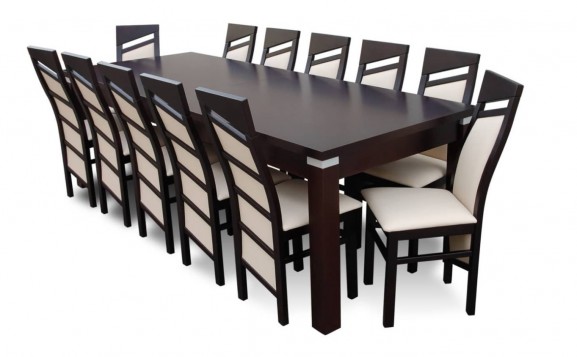 MEGA DUŻY ZESTAW STÓŁ100x250/350+12 KRZESEŁ Z LITEGO DREWNA