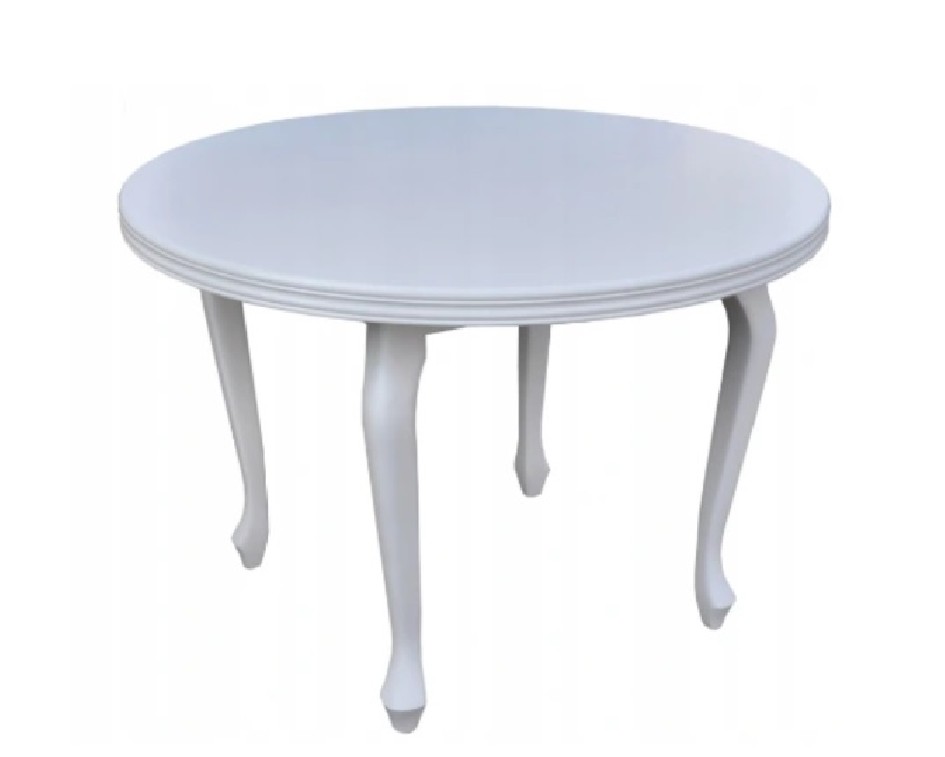 Piękny BIAŁY ZESTAW okrągły stół rozkładany MST-3 110/210+2x50 wkładka długość po rozłożeniu 160/210cm i 4 krzeseła JULIA z litego drewna bukowego.