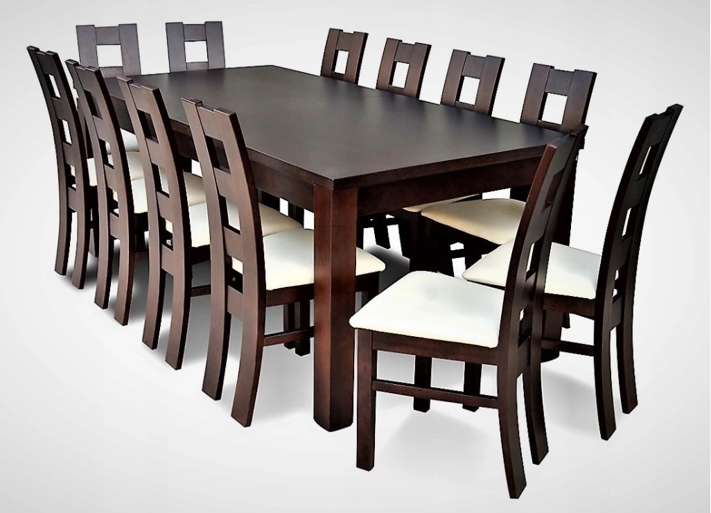 MEGA DUŻY ZESTAW STÓŁ100x200/300+12 krzeseł z litego drewna FORNIR NATURALNY
