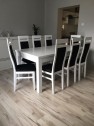 DUŻY BIAŁY ZESTAW STÓŁ100x250/350+8 krzeseł z litego drewna