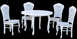 PIĘKNY DUŻY BIAŁY ZESTAW LUDWIK STÓŁ OKRĄGŁY 90/130+1X40 WKŁAD + 4 KRZESŁA
