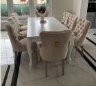 BIAŁY ZESTAW do salonu stół rozkładany MST-8 100x250+2x50 wkładka długość po rozłożeniu 300/350cm i 8 krzeseł GLAMOUR CHESTERFIELD