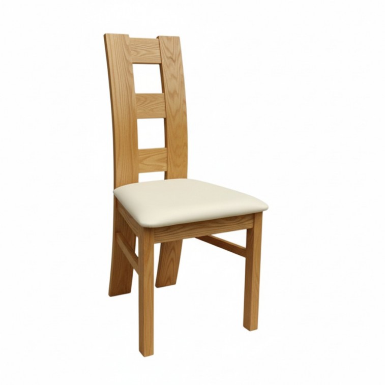 Na siedzisku znajduje się tapicerka oraz pianka poliuretanowa, na której jest wysokiej klasy materiał. Można zrobić również krzesła z siedziskiem bez tapicerki .Klient może wybrać dowolną tapicerkę oraz wybarwienie drewna. Blat stołu wykonany jest z płyty MDF pokrytej dębowym fornirem naturalnym oraz lakierem który zabezpiecza przed uszkodzeniem.