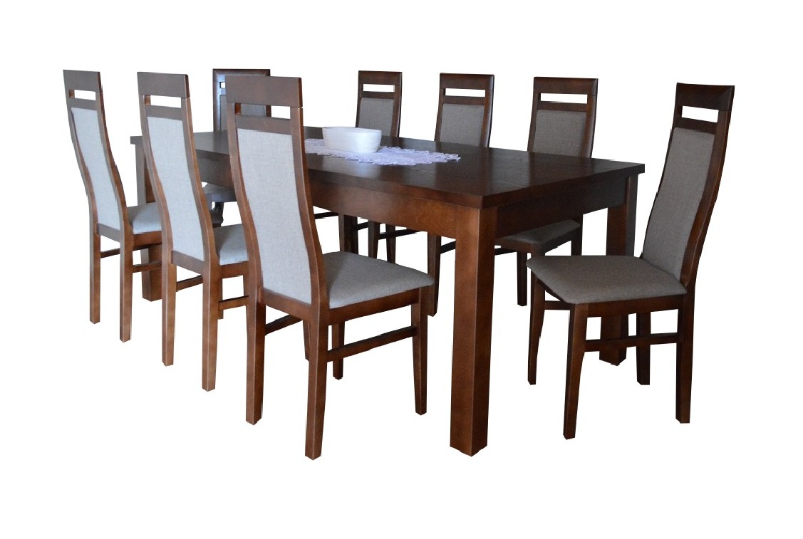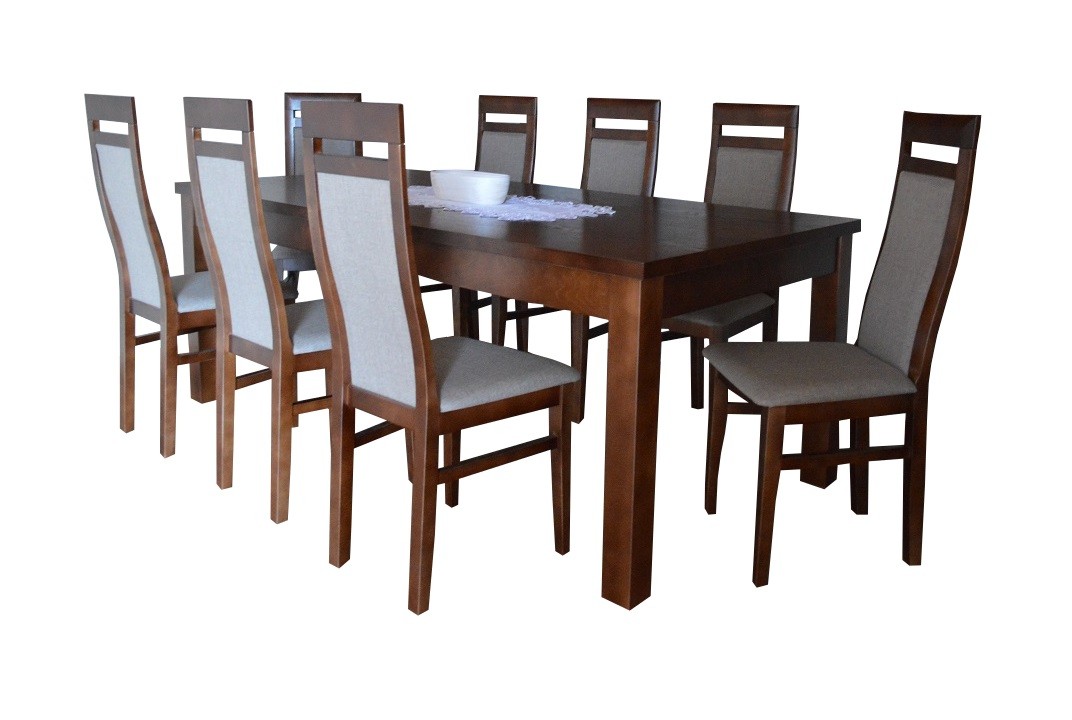 Na siedzisku znajduje się tapicerka oraz pianka poliuretanowa, na którą naciągnięty jest wysokiej klasy materiał. Można zrobić również krzesła z siedziskiem bez tapicerki .Klient może wybrać dowolną tapicerkę oraz wybarwienie drewna. Blat stołu wykonany jest z płyty MDF pokrytej laminatem lub fornirem naturalnym oraz lakierem który zabezpiecza przed uszkodzeniem.