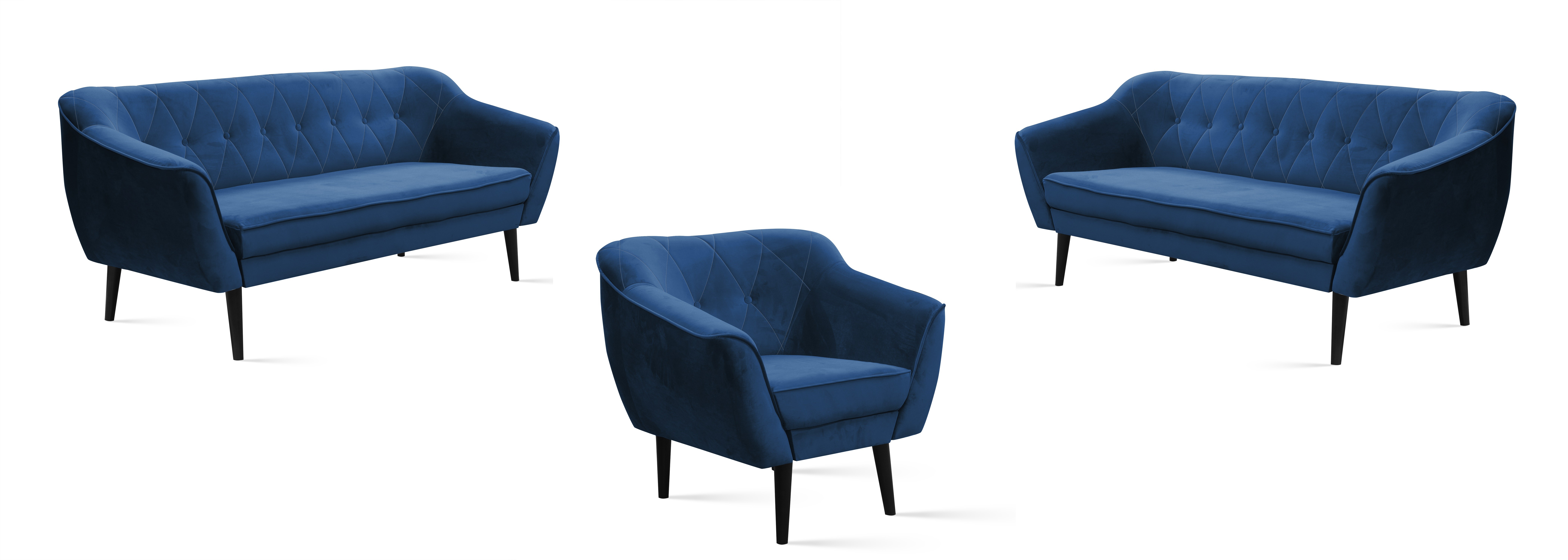 ZESTAW WYPOCZYNKOWY SKANDYNAWSKI SOFA 3+3+1 velvet granatowy