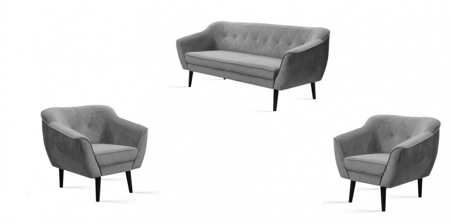 Zestaw mebli wypoczynkowych MAYA 3 + 1 + 1 odcień szarości