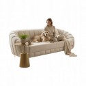 Przedstawiona sofa jest kwintesencją nowoczesnego minimalizmu, mistrzowsko łączącego elegancję z funkcjonalnością. Jej design jest przemyślany, by nie tylko służyć jako mebel wypoczynkowy, ale również by stanowić centralny, dekoracyjny punkt każdego wnętrza. Zaokrąglone kształty i organiczna forma sprawiają, że mebel emanuje ciepłem, wydaje się przyjazny i zapraszający do odpoczynku. Ta sofa to doskonały przykład harmonii między wyszukaną estetyką a bezkompromisowym komfortem użytkowania, idealnie wpasowując się w potrzeby salonubiura czy prestiżowej przestrzeni komercyjnej. Jej unikatowy charakter z pewnością przyciągnie wzrok, świadcząc o wyrafinowanym guście właściciela.