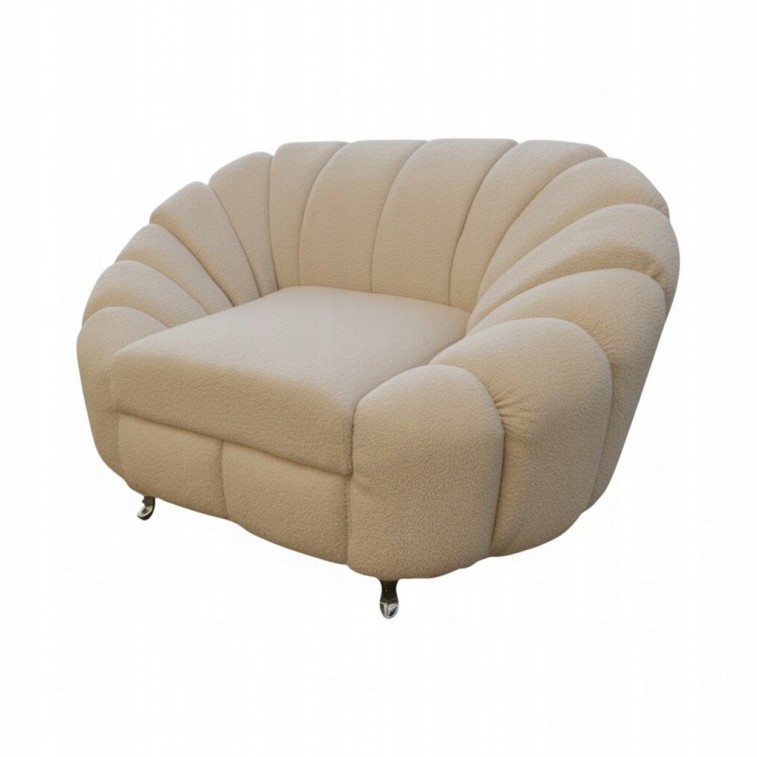 Fotel Werrno rozwija swoją formę jak spiralny kształt muszli, powstały z naturalnego porządku i spokojnego rytmu przyrody. Oparcie oraz podłokietniki przechodzą w siebie miękkim, opływowym ruchem, który tworzy wrażenie delikatnego objęcia. Taka organiczna geometria sprawia, że mebel wygląda lekko, a jednocześnie daje poczucie bezpieczeństwa, jak miejsce stworzone do krótkiego oddechu i zanurzenia się w chwili spokoju.