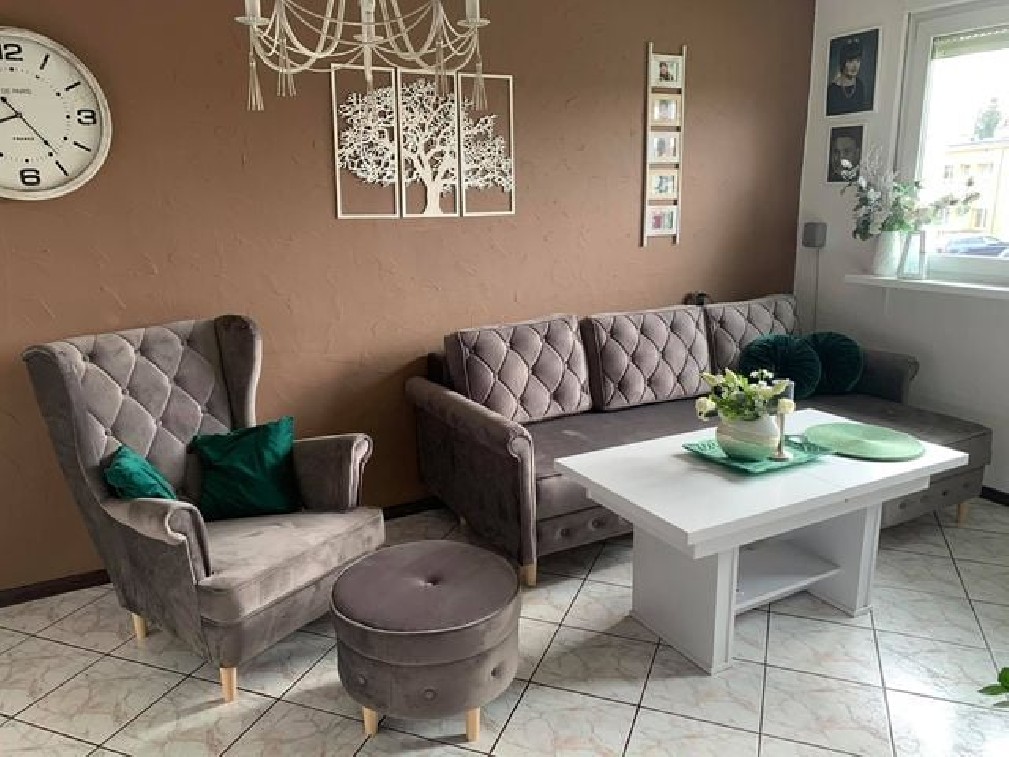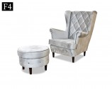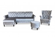 ZESTAW WYPOCZYNKOWY SOFA ROZKŁADANA + FOTEL PIKOWANY Z PODNÓŻKIEM