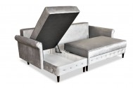 PIĘKNY DUŻY ZESTAW NAROŻNIK Z FUNKCJĄ SPANIA I POJEMNIKIEM NA POŚCIEL LILI NA DREWNIANYCH NOGACH + FOTEL USZAK +OKRĄGŁA PUFA W WYBRANYM KOLORZE Z DREWNIANYMI NÓŻKAMI WZÓR PIKOWANIA OPARCIA PIKI KARO GUZIKI