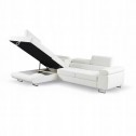 Narożnik ANTOS L posiada funkcję spania oraz pojemnik na pościel. Nogi w narożniku zastosowano chromowe. Narożnik posiada 4 regulowane zagłówki, ozdobne przeszycia oraz piki na siedzisku.